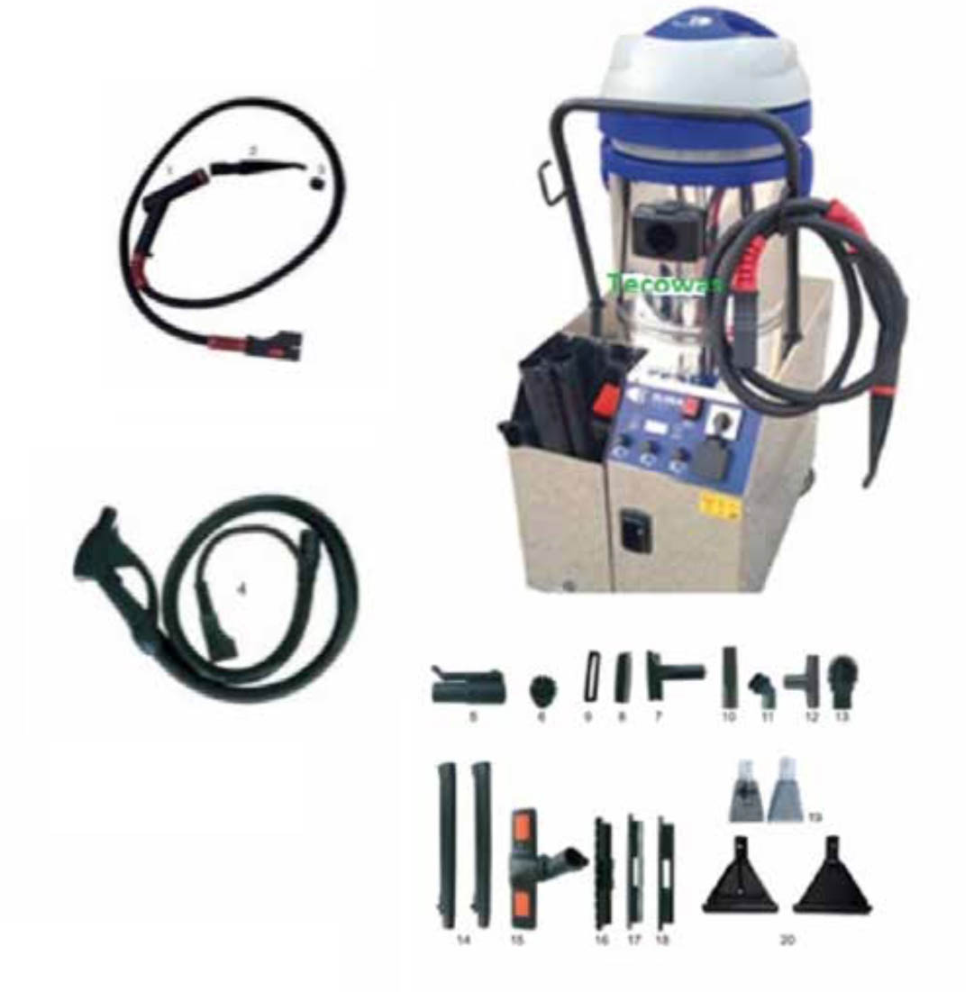 que permite el uso del proceso de inyección/extracción (tanto con agua fría/caliente ajustable y con o sin detergentes) también.