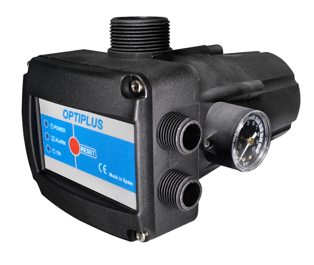 El Presostato Optiplus ordena el arranque, paro automático de la bomba al abrir o cerrar respectivamente cualquier grifo o válvula de la instalación.