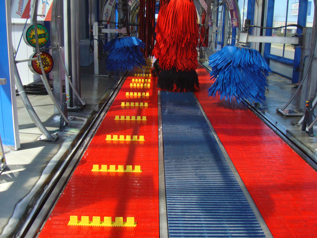 El túnel de 30 metros incluye la cinta transportadora, módulo de carga automática y todos los componentes estándar. Comienza con un arco de prelavado y un colector para la limpieza de bajos, entonces se pasa a una combinación de cepillos de lavado para bajos, tejido de contorno y cepillos de lateral. El siguiente paso es un arco de triple espuma y otra combinación de cepillos y tejido para contorno. Los cepillos de contorno ofrecen rotación inversa y se adaptan a la forma de la carrocería.